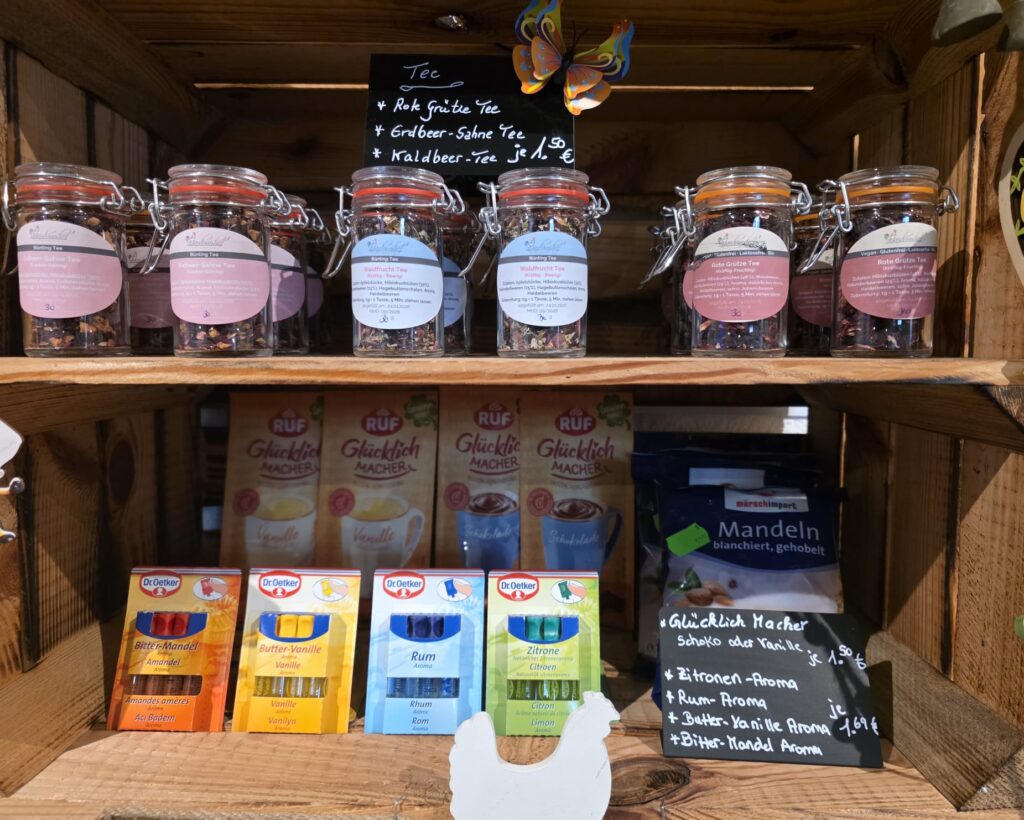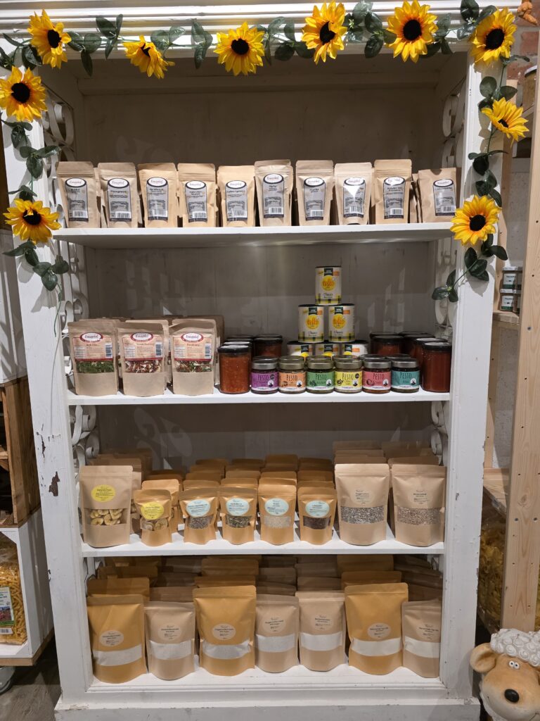 verschiedene Mehlsorten ab 250g Packung, Weizen & Roggenschrot, Saatenmischungen, Gewürze, Backzutaten, verschiedene Teesorten, diverse Nudelsoßen, Nagerfutter, Sittichfutter, Pferdeleckerlies.